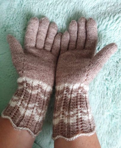 Käsitsi kootud sõrmikud. Kindad on kootud pöidlakiiluga.